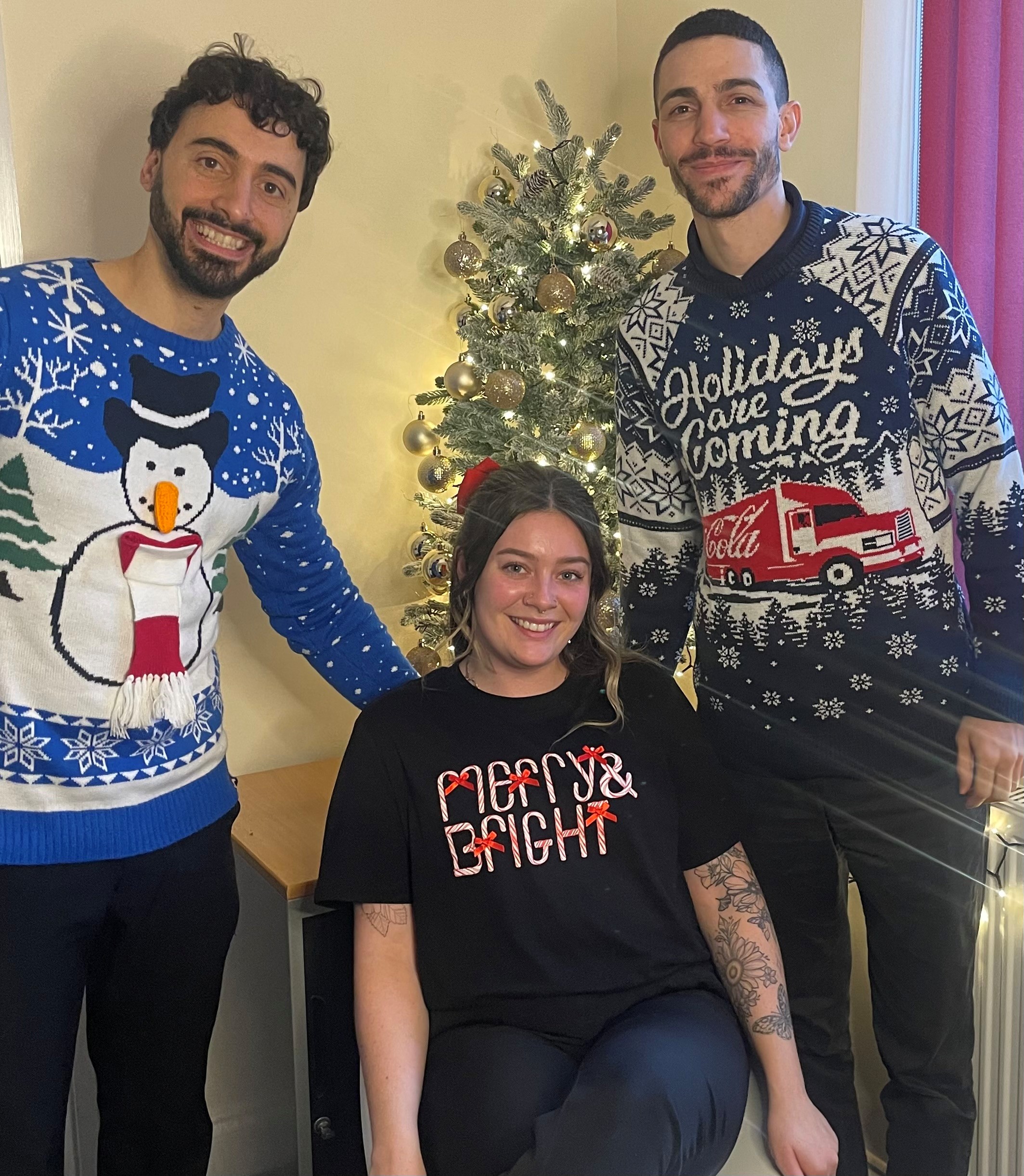 Today, we're all wearing our most fun and cheerful Christmas tops and jumpers.