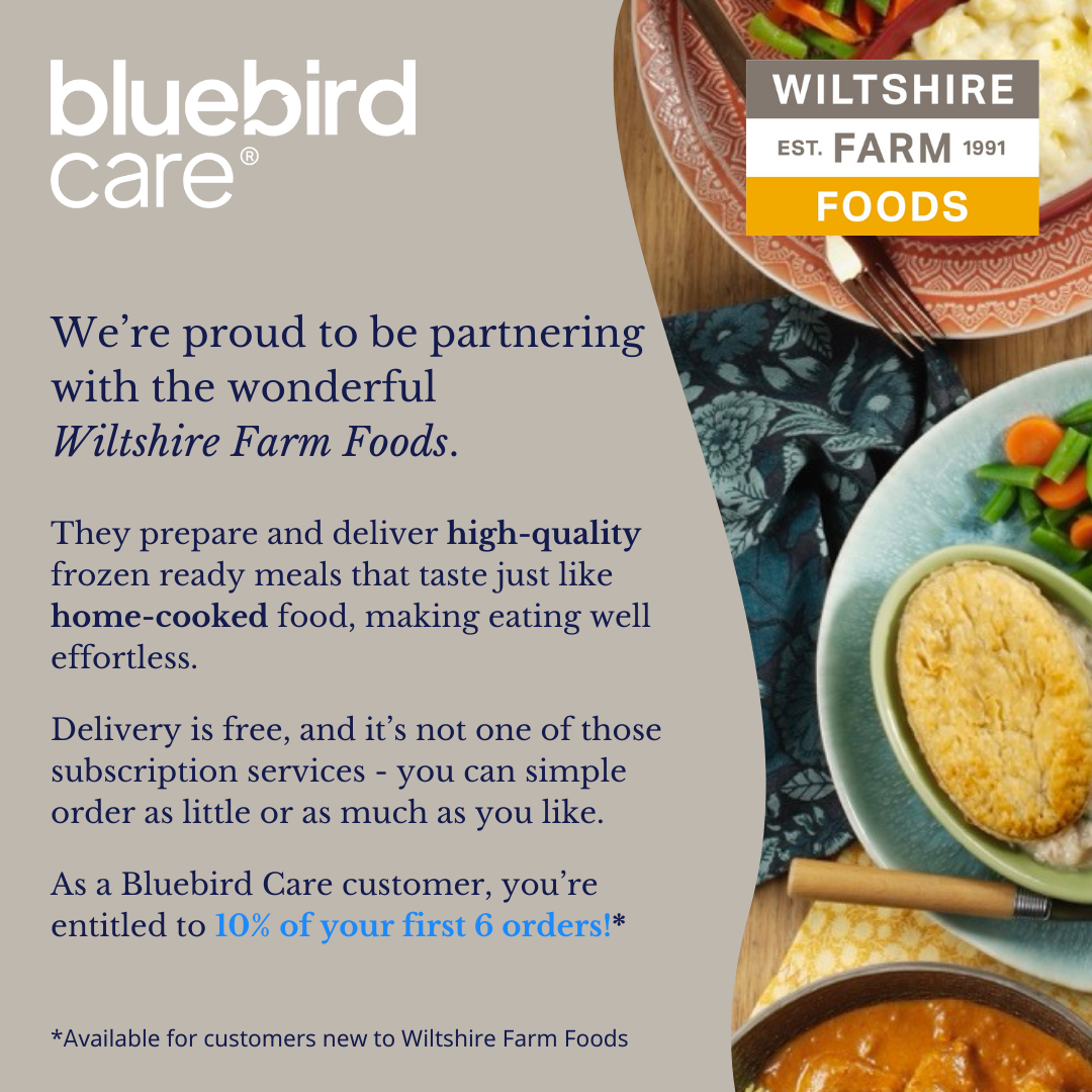 Bluebird Care has teamed up with Wiltshire Farm Foods to provide a fantastic offer for our customers.