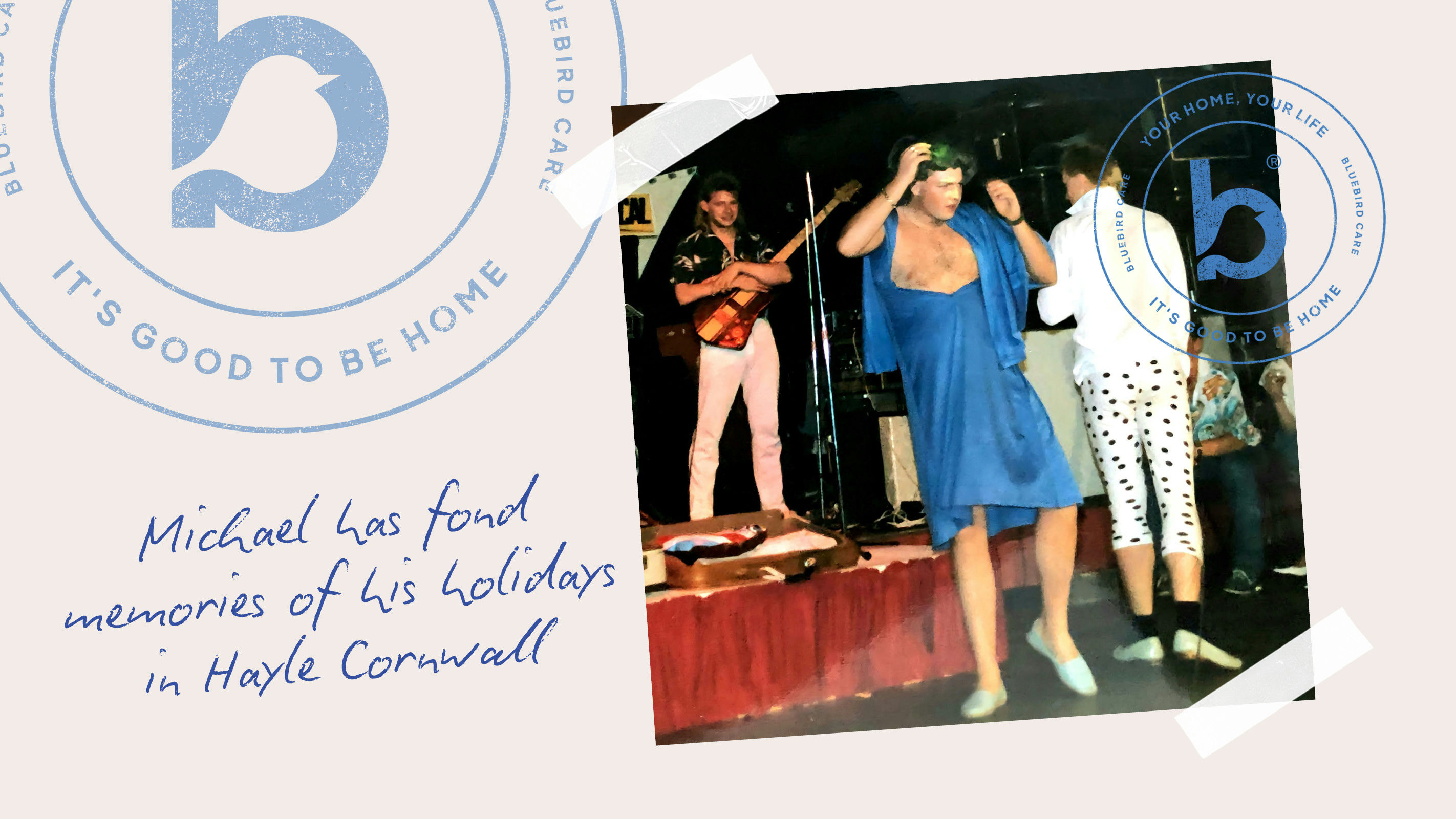One evening, the holiday park’s entertainer who was sporting a pair of cool polka dot trousers - announced a fancy dress competition. Without hesitation, and always up for a laugh, Michael borrowed a dress from Tony’s mum and took to the stage. The moment was pure fun, full of laughter, and perfectly captured the carefree joy of those holidays.