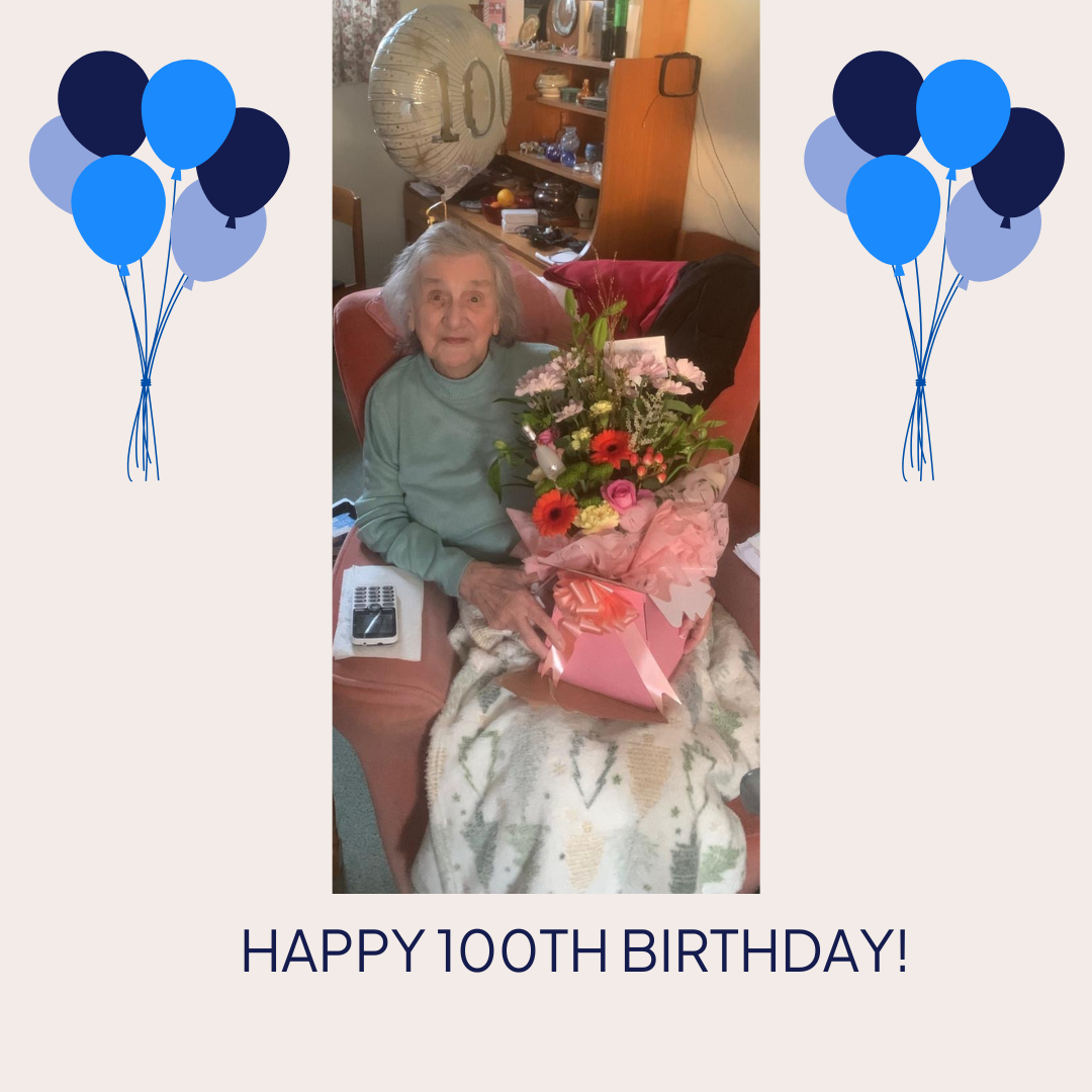 One of our clients celebrated a milestone today. She turned 100! We brought her some flowers and joined her celebration! We are honoured to see her smiling and enjoying herself as she celebrates this day with family.