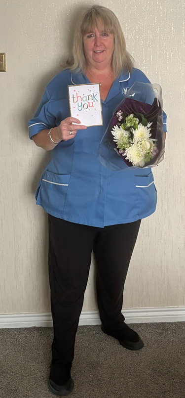 Well done to Dawn who has recently received a lovely bunch of flowers and card from a family member of a customer we have been looking after for the last couple of years!