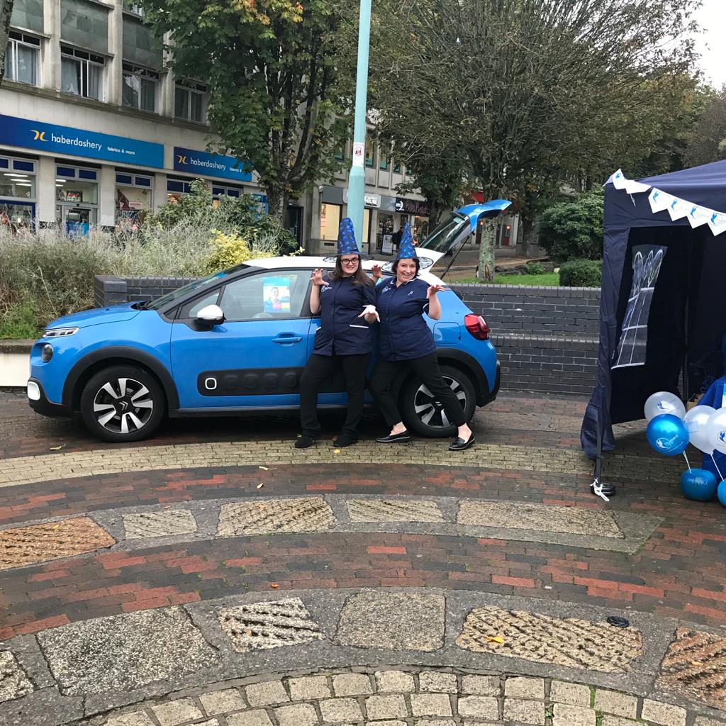 Zoe and Chrystal organised a marketing tent in Plymouth City Centre! Some of the carers came along to help.