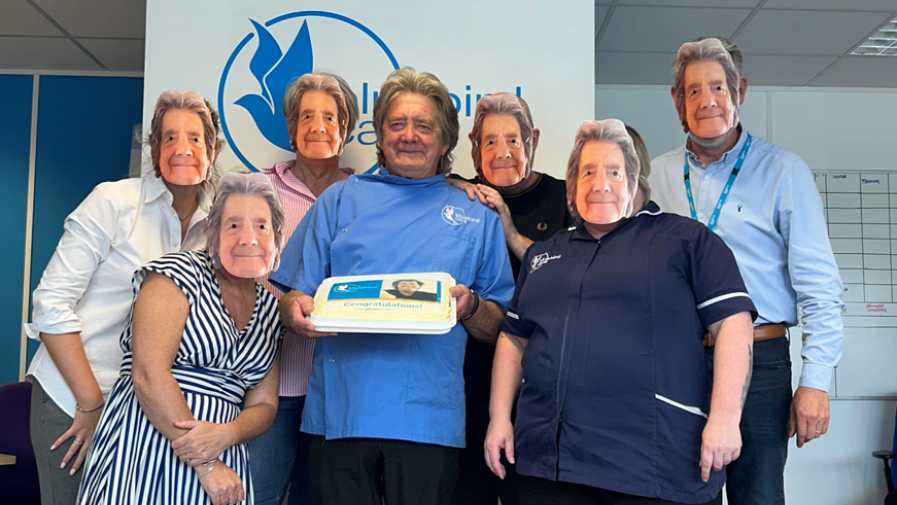For an astonishing 5 years, Derek has been a beacon of care and compassion at Bluebird Care. His dedication and expertise are truly commendable. Derek isn't a usual care expert, he is actually older than most of his customers! So, to surprise Derek and celebrate his 80th birthday we invited him into head office for 'Derek Day', a fully themed day of Derek, with Derek cake, decorations and of course, Derek masks!