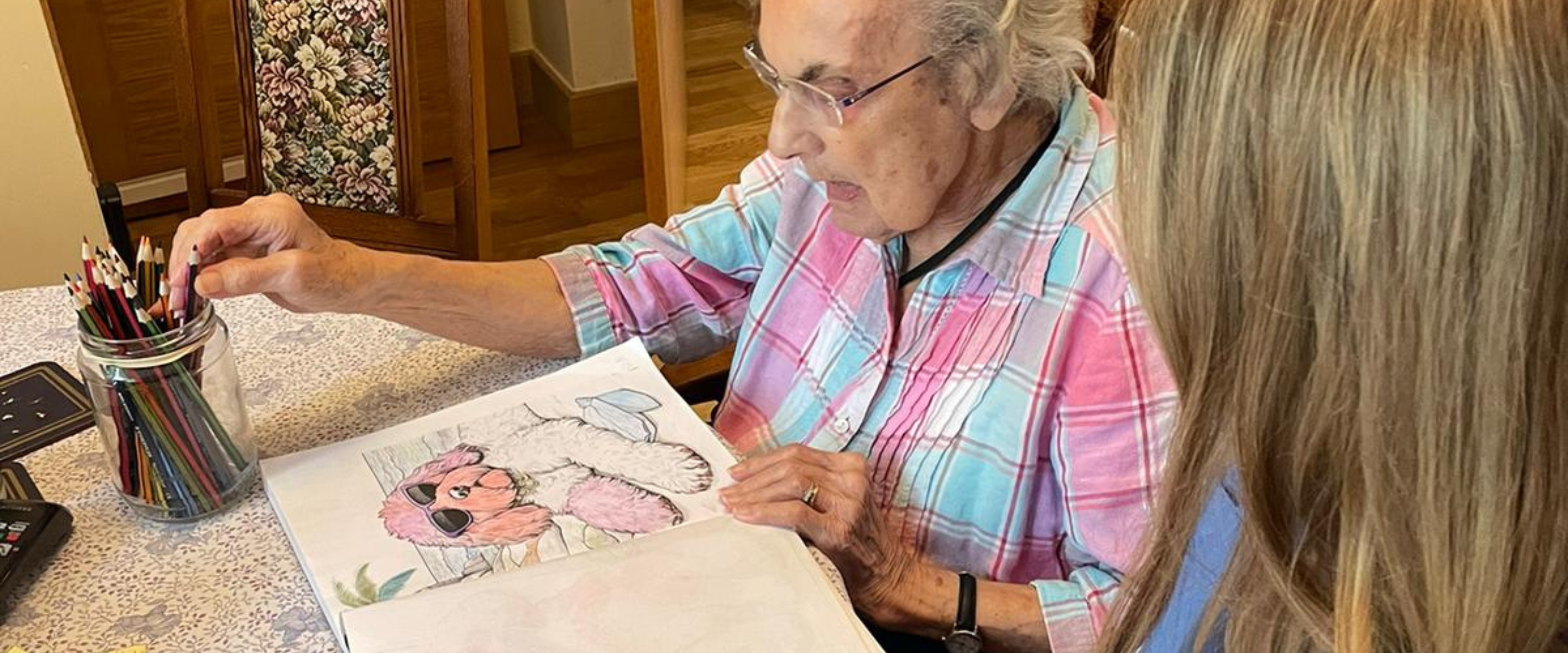 Barbara, one of our beloved customers, has always had a love for art. Over time, she has found that colouring not only brings back fond memories but also helps her relax and stay engaged. Ramona, her dedicated carer, discovered this shared passion and turned it into a daily ritual that brings immense joy to both.