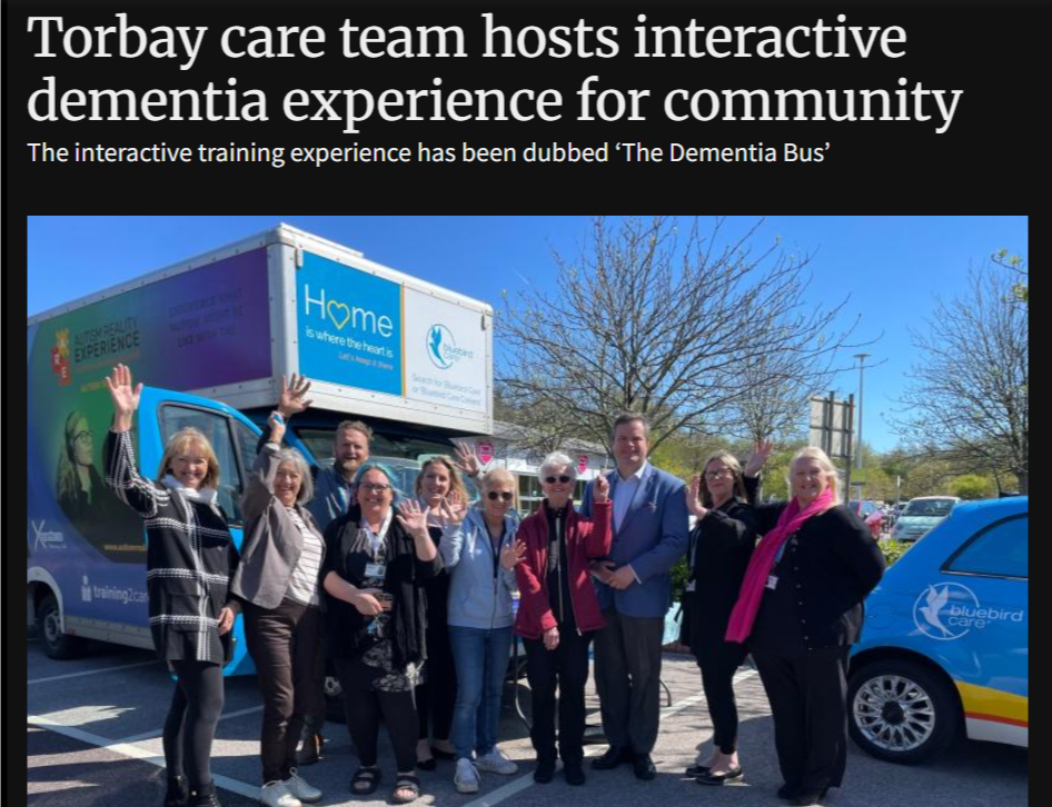 During Dementia Action week Bluebird Care have organised for the Virtual Dementia Tour to visit Torbay, Totnes and Plymouth. The “Dementia tour” is a simulator that gives a person with a healthy brain the chance to experience what dementia can be like by replicating different symptoms and challenges faced by someone with the condition.