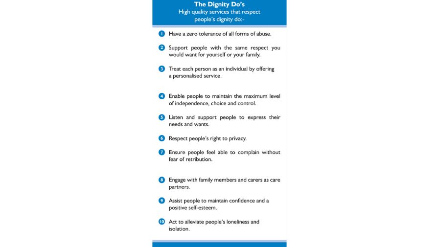 - Speak up about dignity to improve the way that services are organised and delivered