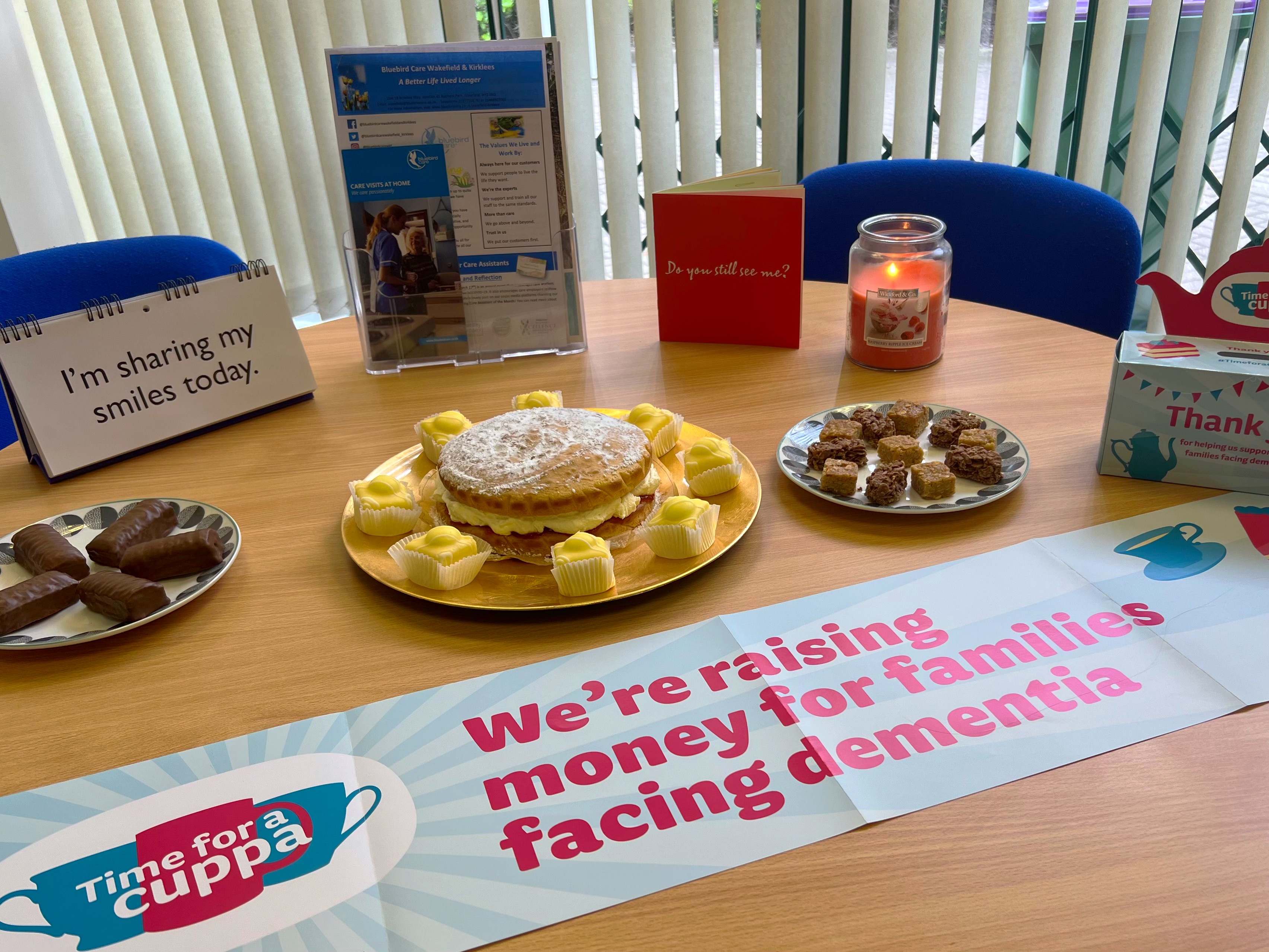 At Bluebird Care Wakefield and Kirklees, we love to support our communities, so we wanted to take part in Time For A Cuppa by hosting a bake sale at our Wakefield office, inviting everyone we could think of. We provided a delicious homemade sponge cake as well as French fancies and some chocolate biscuits. Many of our lovely Care Experts joined us throughout the day for a sit-down and a hot drink. We even attracted one of our neighbouring businesses – The Children’s Family Trust – who not only joined us for a coffee and cake, but also donated some children’s clothes to us for our upcoming baby and children’s event.